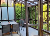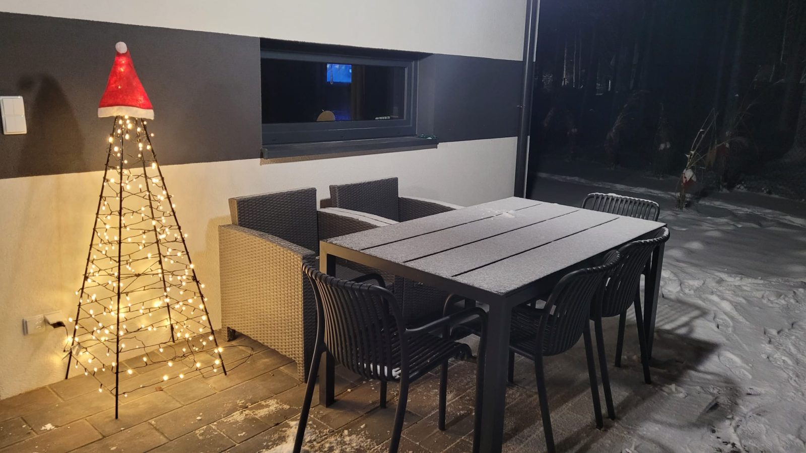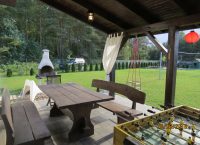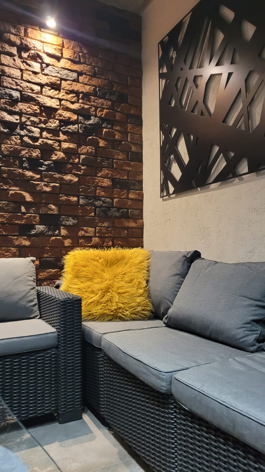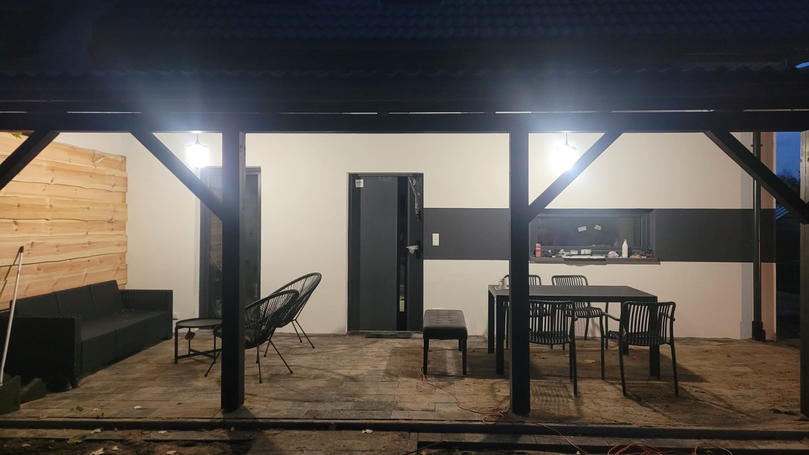 - meble ogrodowe – duży stół z ławkami, wygodna zewnętrzna kanapa, stolik kawowy, klimatyczne oświetlenie