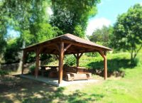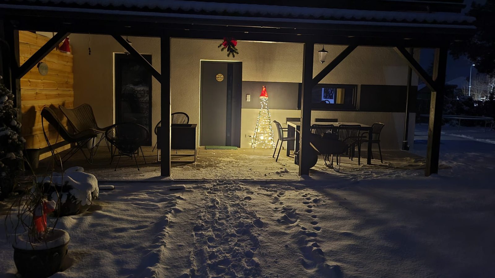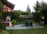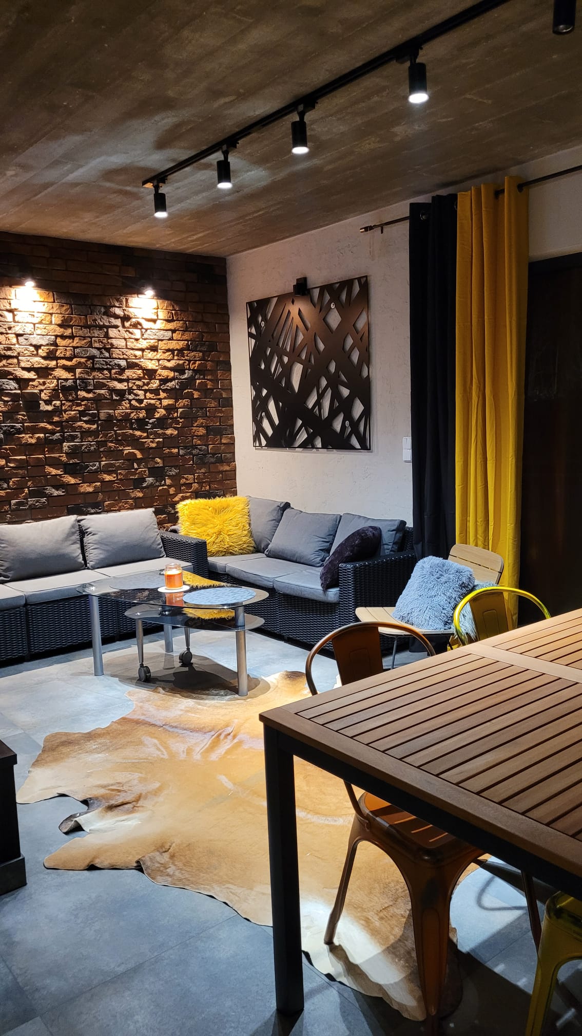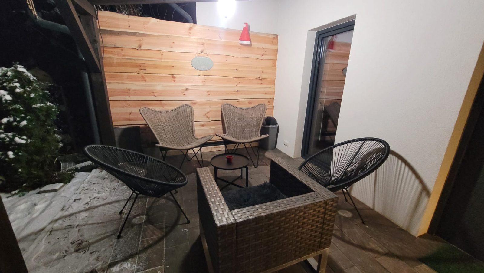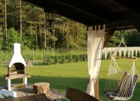 - meble ogrodowe – duży stół z ławkami, wygodna zewnętrzna kanapa, stolik kawowy, klimatyczne oświetlenie