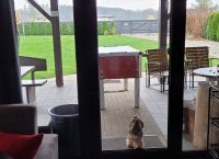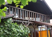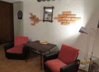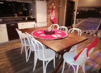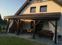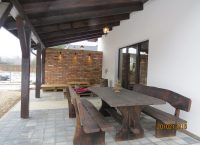 - Salon z wyjściem na zadaszony, bardzo duży, wygodny taras – na tarasie duży stół, krzesła, ławki