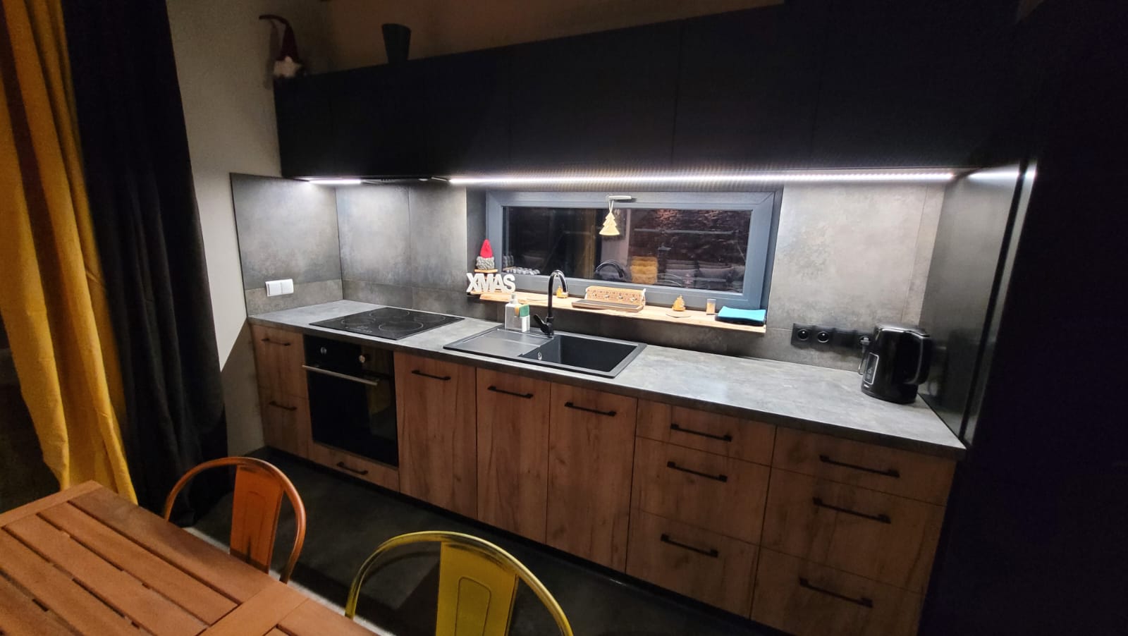 - Kuchnia w pełni wyposażona: lodówko-zamrażarka, kuchenka z piekarnikiem, mikrofalówka, zmywarka, czajnik elektryczny, toster, ekspres do kawy ciśnieniowo -przelewowy, komplet naczyń, sztućców, garnków, misek, patelnia. Dodatkowo zawsze dla nowych klientów czysta gąbka, płyn do naczyń, kostki do zmywarki i worki na śmieci .