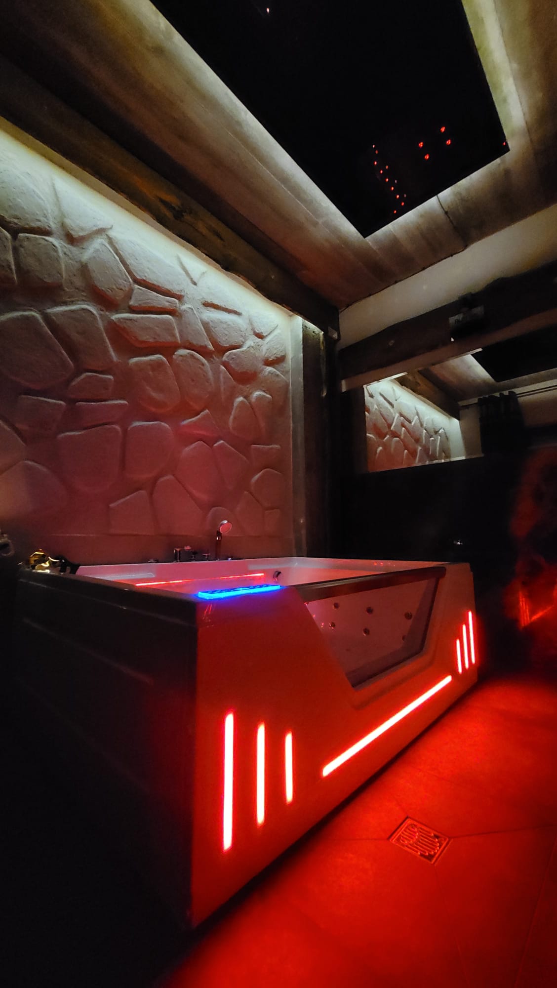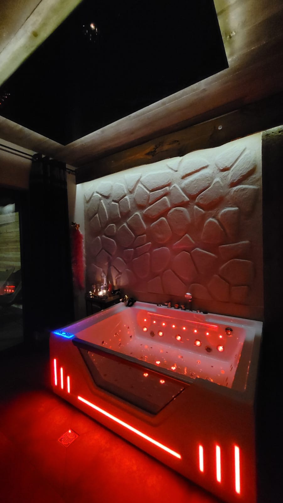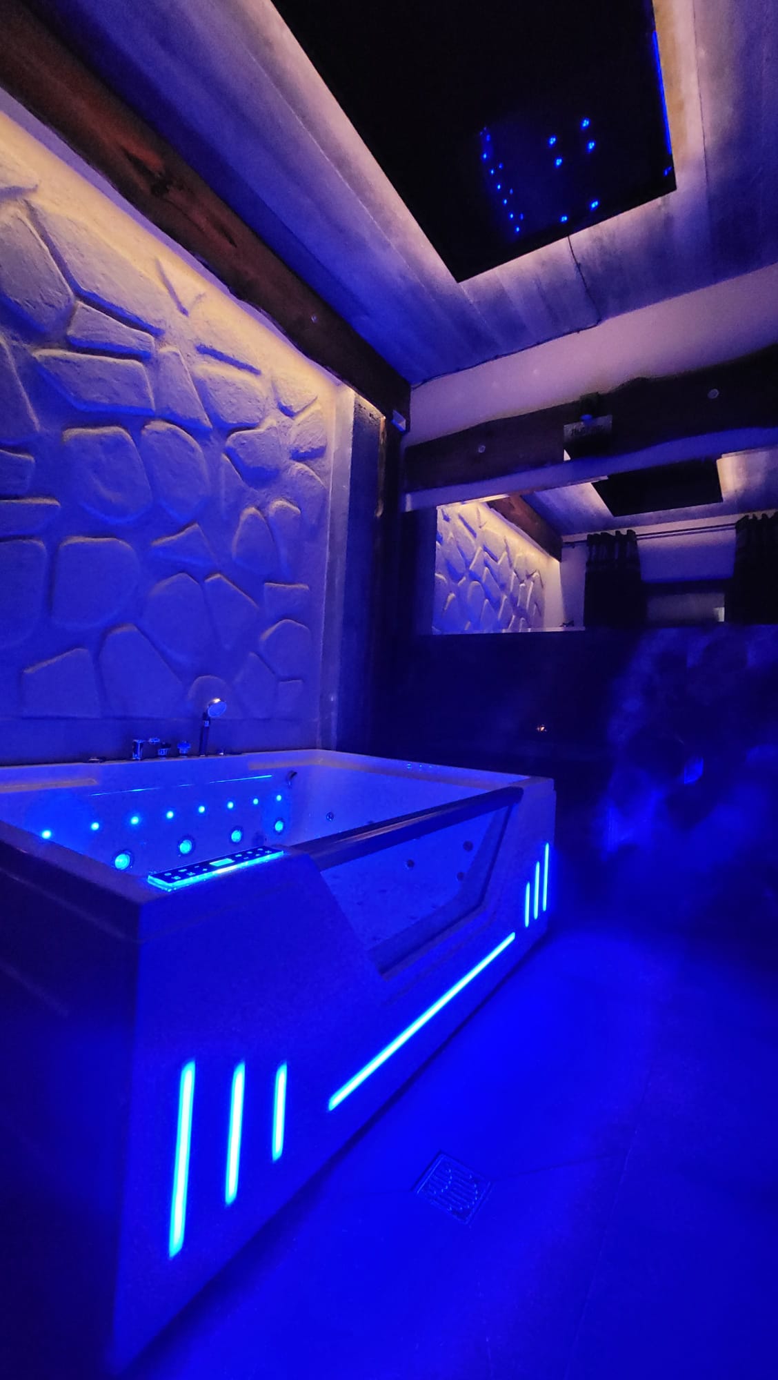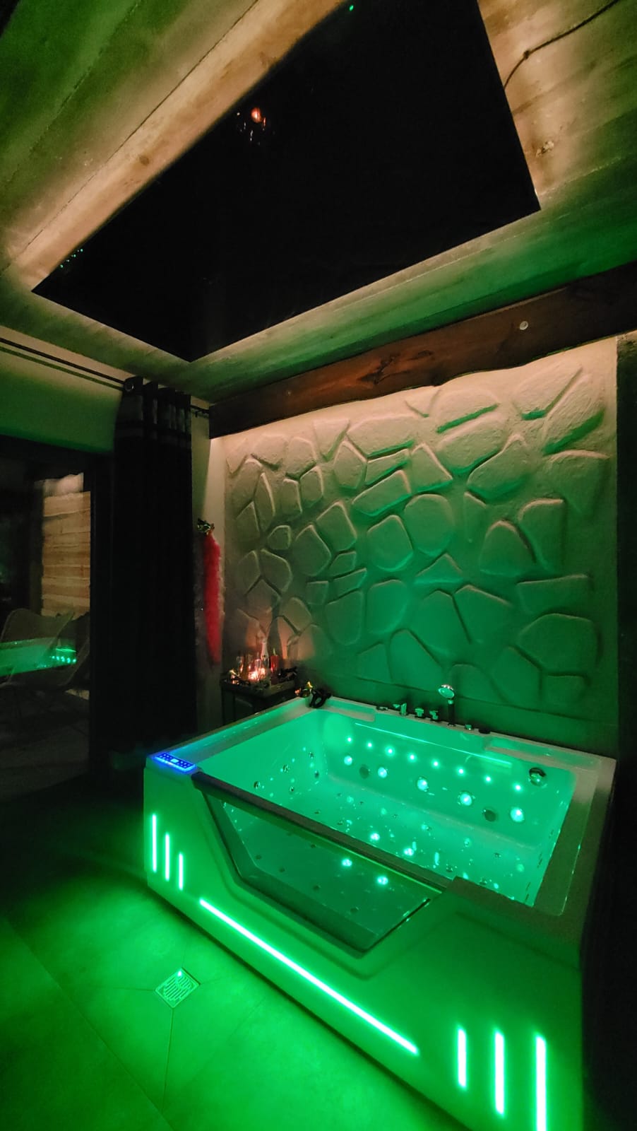 - Duży pokój kąpielowy z jaccuzzi z hydromasażem, biokominkiem (płyn we własnym zakresie)