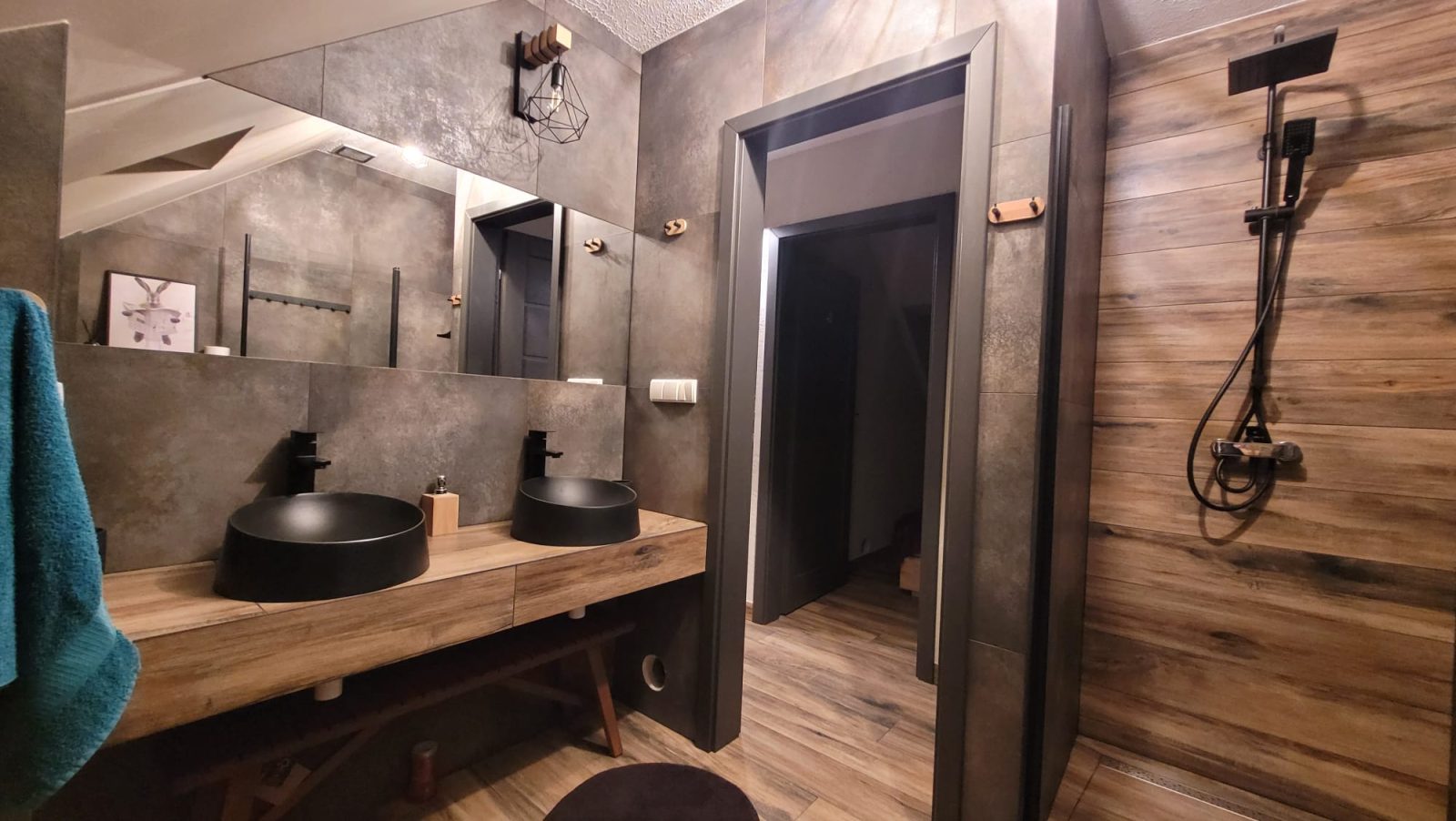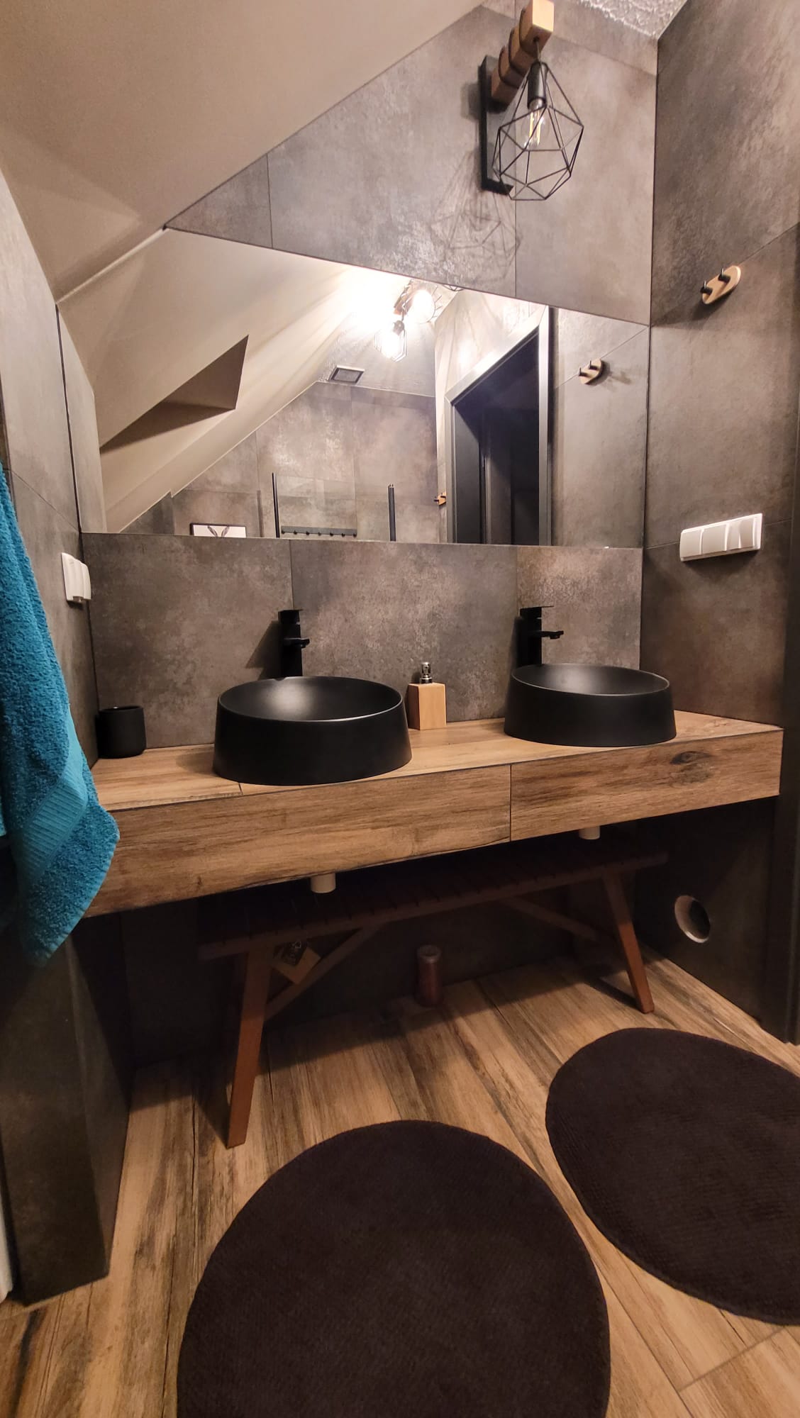 - komfortowa łazienka z dwiema umywalkami , prysznicem i pralką , dodatkowo: suszarka do włosów, ręcznik do rąk, mydło w płynie.